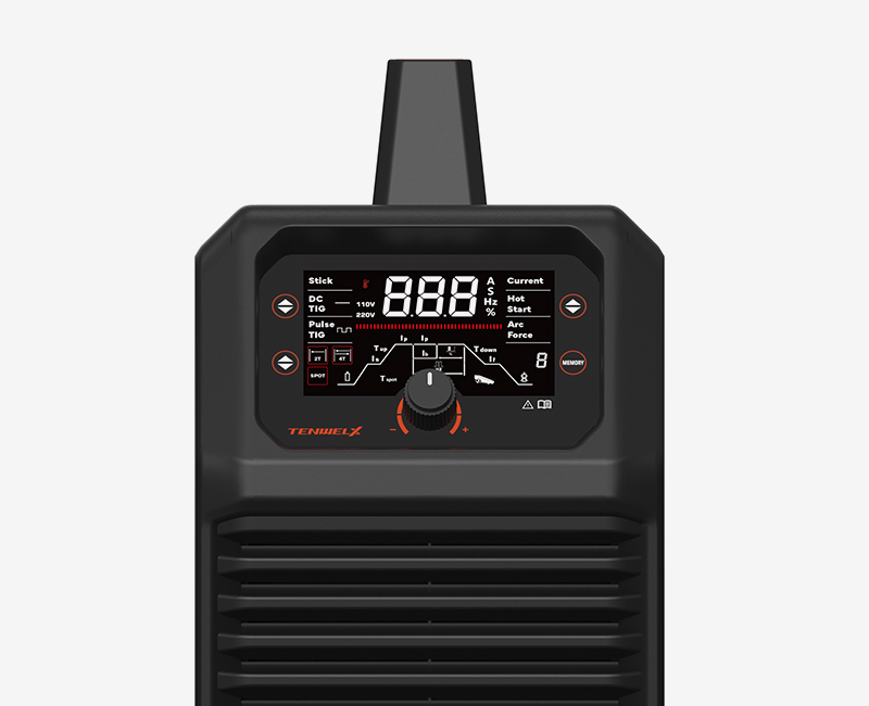 Memory function stores up to 10 sets of welding parameters for quick recall.